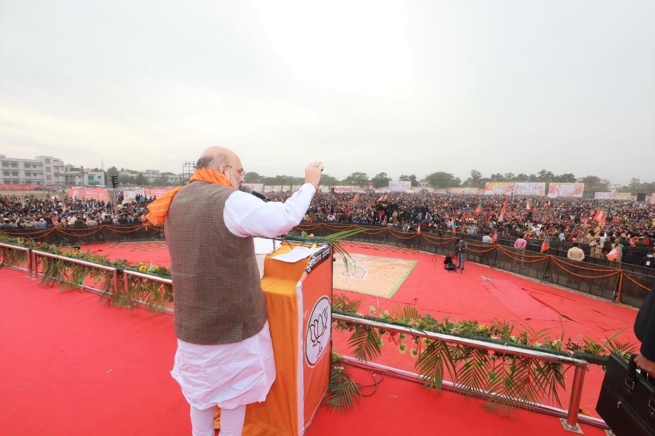 <h2>अलीगढ़। अलीगढ़ में गुरुवार को पहुंचे अमित शाह ने भारत माता की जय के साथ संबोधन शुरू किया। उन्ह