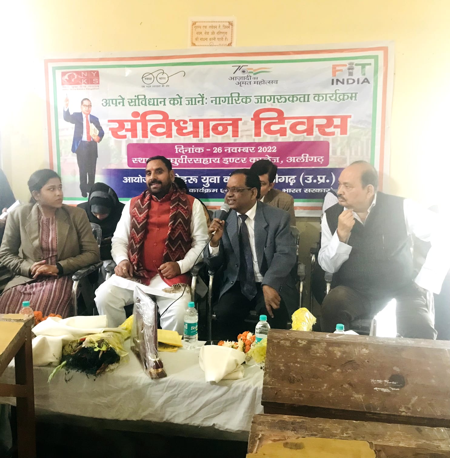 <h2 style="text-align:justify">अलीगढ़ । नेहरू युवा केंद्र के तत्वावधान में रघुवीर सहाय इंटर कॉलेज में संविधान दिवस