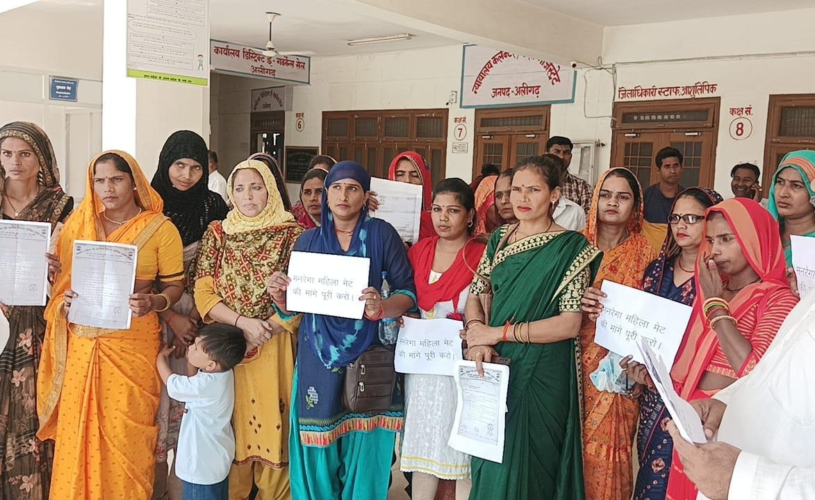 <h2>अलीगढ--मनरेगा महिला मेट की मांगो को लेकर जिले की मनरेगा महिला मेटो संग कांग्रेस नेता इंजीनियर