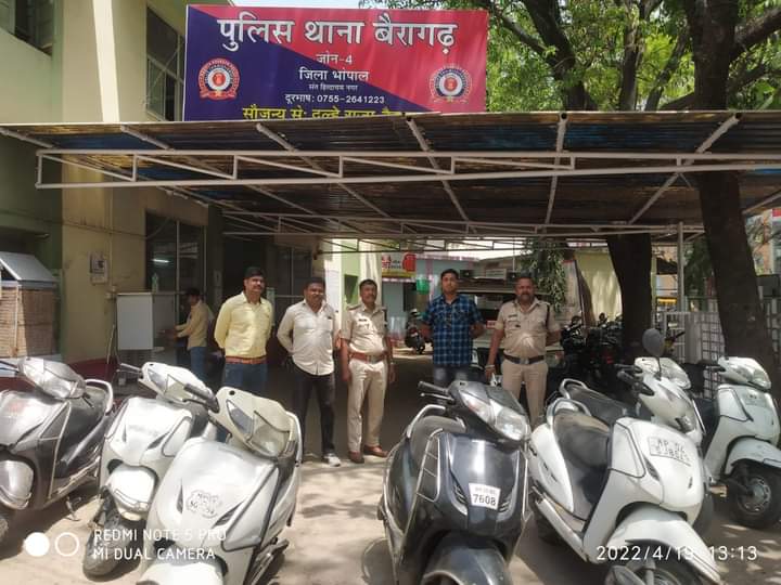 <h2>भोपाल। रिपोर्टर देवेन्द्र कुमार जैन<br /> थाना अयोध्या नगर पुलिस ने चोर को 3 दो पहिया वाहनो साथ